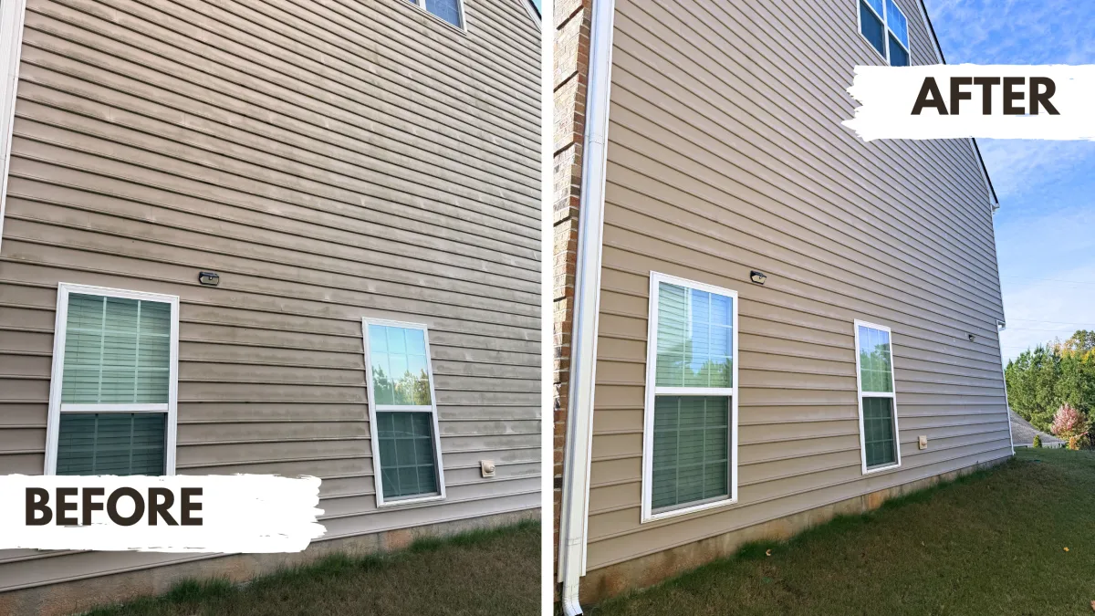 Yes! We use a low-pressure soft wash system and eco-friendly cleaning solutions designed to remove dirt, algae, and mildew without damaging surfaces or landscaping.